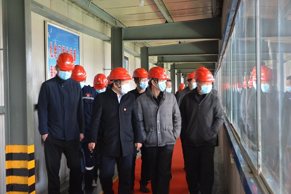 裴文田司長(右二)在夏甸金礦選礦廠檢查企業大(dà)排查大整治情況