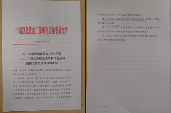 中國思想政治研究(jiū)會是中央宣傳部領導的,組織和推動思想政治工作(zuò)研究的全國性組織,主管全國省、自治區、直轄市、新疆生(shēng)產建設兵團思想政治工作研究會和全國性行業(係統)思想政治工作研究會。此次在全國範圍內,共評選出一類研究成果20篇、二類研究成果30篇、三類研究(jiū)成果50篇。
