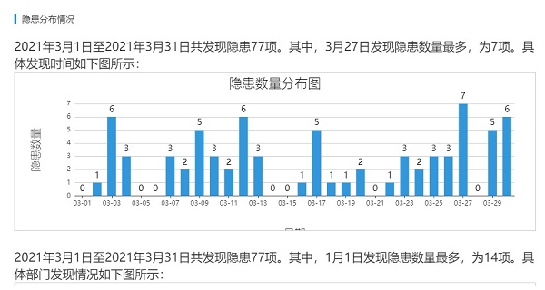 找準病因。隻有查出“病(bìng)因”所(suǒ)在,才能(néng)給出“解藥”,做(zuò)到“藥到病除(chú)”。該礦借助山東(dōng)省安(ān)全生產風險管控平台及其他信息化手(shǒu)段,通過對隱患的類型、等級、發生地點(diǎn)、時(shí)間等信息進行采(cǎi)集匯總。專門製作了隱患排查統計圖表,全方位分析“三違”發生率和隱患防治存在的短板,從而製定相應的改進措施,為消除“三違(wéi)”和隱患打牢基礎。同時,為進一步細化管理,將排(pái)查的隱(yǐn)患類別、發生地點、班次,“三違”人員的文(wén)化程度、工種、工齡、年齡等方(fāng)麵進(jìn)行了統計分(fèn)析,明確隱患排查重點、難點,對重(chóng)點部位、重點人員分級管控,確保“摸得清(qīng)”、“控得住(zhù)”。