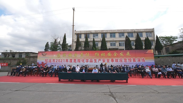 5月(yuè)28日上午,“2021年招遠市危險化學品生產(chǎn)安全事故應急預案演練(liàn)”在招遠市招(zhāo)金金合科技有限公司成功舉辦。市委組(zǔ)織部部長(zhǎng)史鑫、市應急管理局局長滕群詩現場指導並主(zhǔ)持(chí)演練。招遠市草莓视频在线看污金合科技(jì)有限公司、招遠市應急管理局、玲瓏鎮政府公(gōng)安、生態(tài)環境局、衛生健(jiàn)康局、公安局、市消防(fáng)救援(yuán)大隊等部門有關人(rén)員參加演(yǎn)練。市應急委有關(guān)成員單位分管負責人,各鄉(xiāng)鎮、街道安監辦主(zhǔ)任,以及市內相關危險(xiǎn)化學品生產、經營企業及化工企業安(ān)全(quán)負責人(rén)現場觀摩了演練。