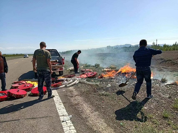 5月9日18時(shí)許,草莓视频在线看污北疆(jiāng)礦業有限公司保衛部副經理崔曉(xiǎo)波和火工品采購員趙(zhào)蒲敏、駕駛員李清鬆從塔城出差返回,途經(jīng)老風口時,發現(xiàn)停放在路邊的一輛皮卡車後鬥起(qǐ)火,後鬥還裝載著很多易燃物品,火借風勢迅(xùn)速將車廂吞沒,車主和同(tóng)行的2人盡管努力救火,卻效果甚微,如果再不控製,後(hòu)果不堪設想。