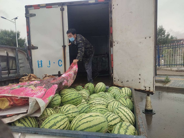據悉,當前正值甘肅招(zhāo)金貴金屬冶煉有限公司駐地——臨洮縣中鋪鎮瓜果蔬菜(cài)大量成(chéng)熟的季節。這裏的(de)氣候幹旱少雨、早晚溫差大,是遠(yuǎn)近聞名的西瓜之鄉,種出的沙地西瓜脆爽沙(shā)甜,是當季的解暑好物。與此同時(shí),這裏還盛產玉米、辣椒、土豆等時(shí)鮮蔬菜。但是,一場突如其來的疫情(qíng)攪亂了這美好的豐收時節,原定的(de)收購商無法按計劃到達(dá)中鋪,瓜果蔬(shū)菜麵臨嚴重的滯銷情況,原本期待豐收的農戶們(men)急(jí)的愁眉不展。