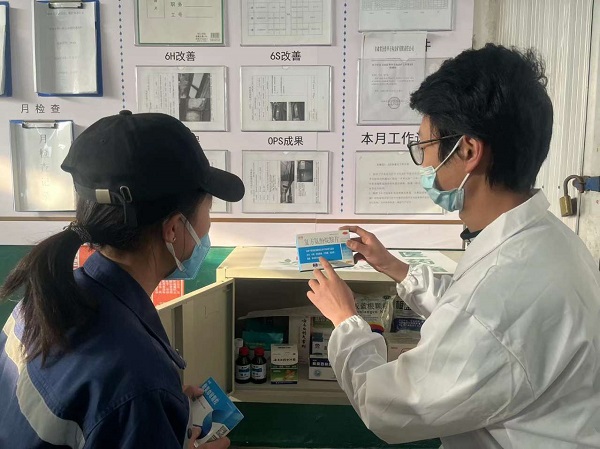 “別看這(zhè)小小藥箱(xiāng),卻為我(wǒ)們的健康提供了(le)大保障,疫情期間,員工有個發燒感(gǎn)冒的,有時候真是一‘藥’難求,平時(shí)工(gōng)作期間難免會有個身體疼痛發炎,到那會兒小藥箱就派上大用場了。小藥箱裏(lǐ)藥品一應俱全,公司也會按照藥品使用期限定期更換,還增補了很多職工普遍反饋需要的藥(yào)品。”選礦車間(jiān)磨浮車間班長旦吉才旦介紹說。