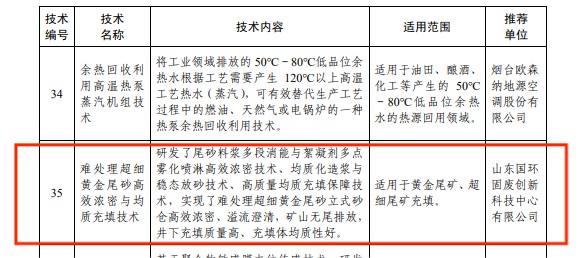 近日,山東省科學技術廳與山東省生態環境廳聯合印發(fā)了《2023年山東(dōng)省綠色低碳技術成果目錄》。山東國環固廢創新科技中心有限公司提報的《難處理超細(xì)黃金尾(wěi)砂高效濃(nóng)密與均(jun1)質充填(tián)技術》成功入選。
