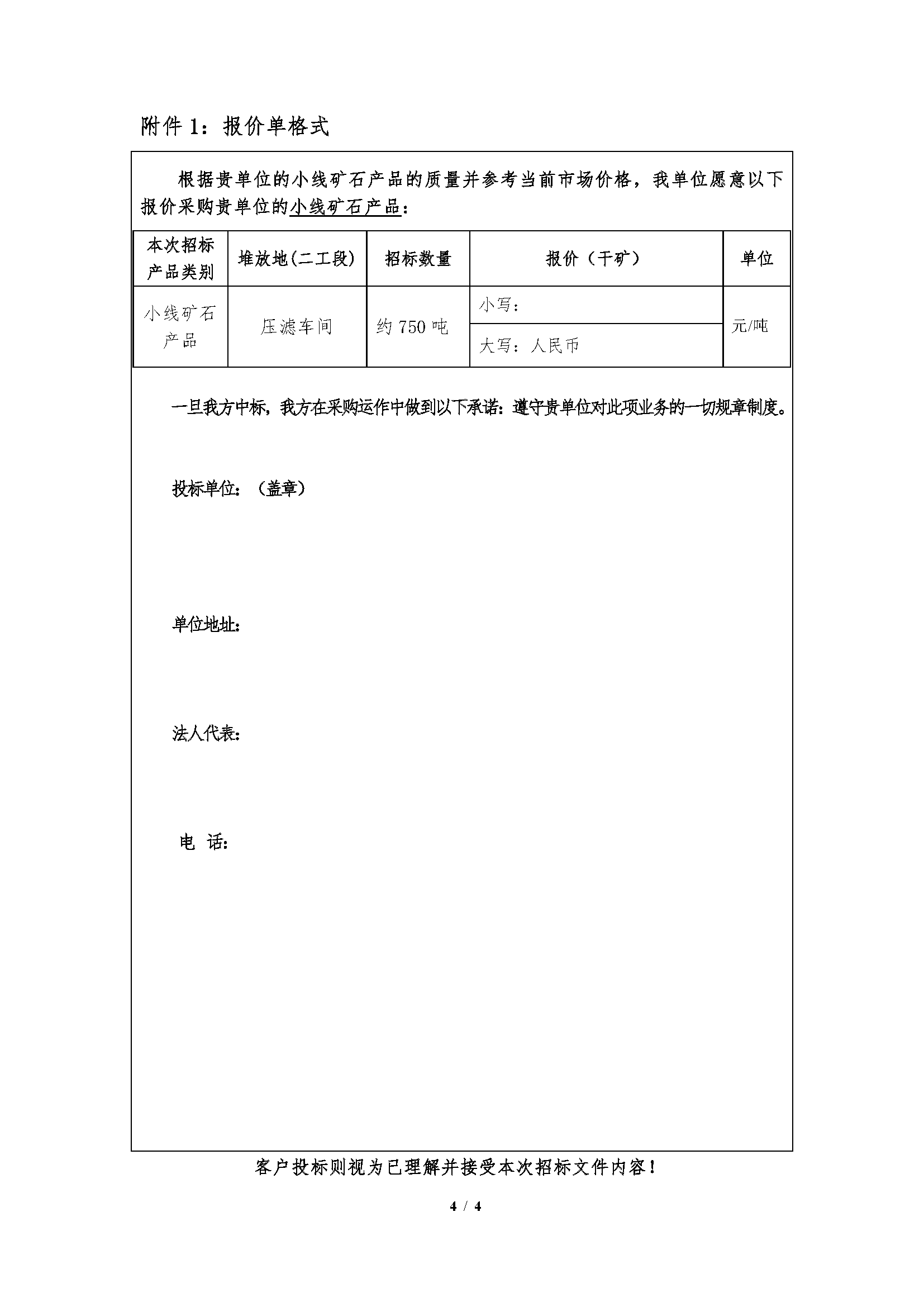 小線礦石產品招標文件