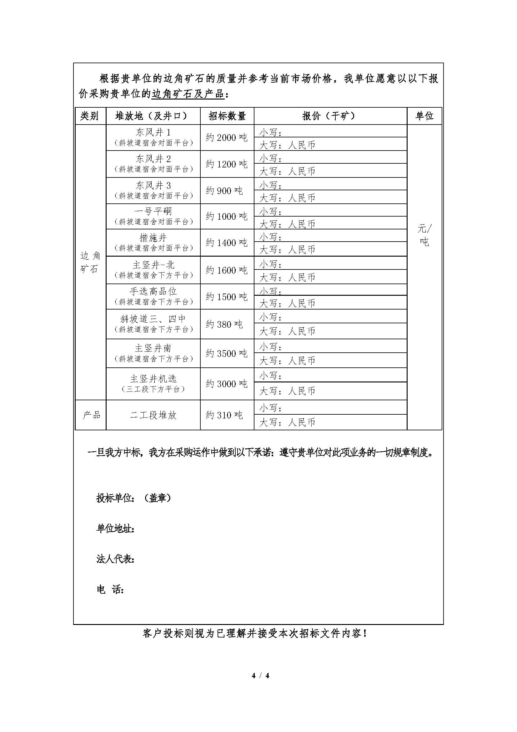 邊角礦(kuàng)石及產品招標文件