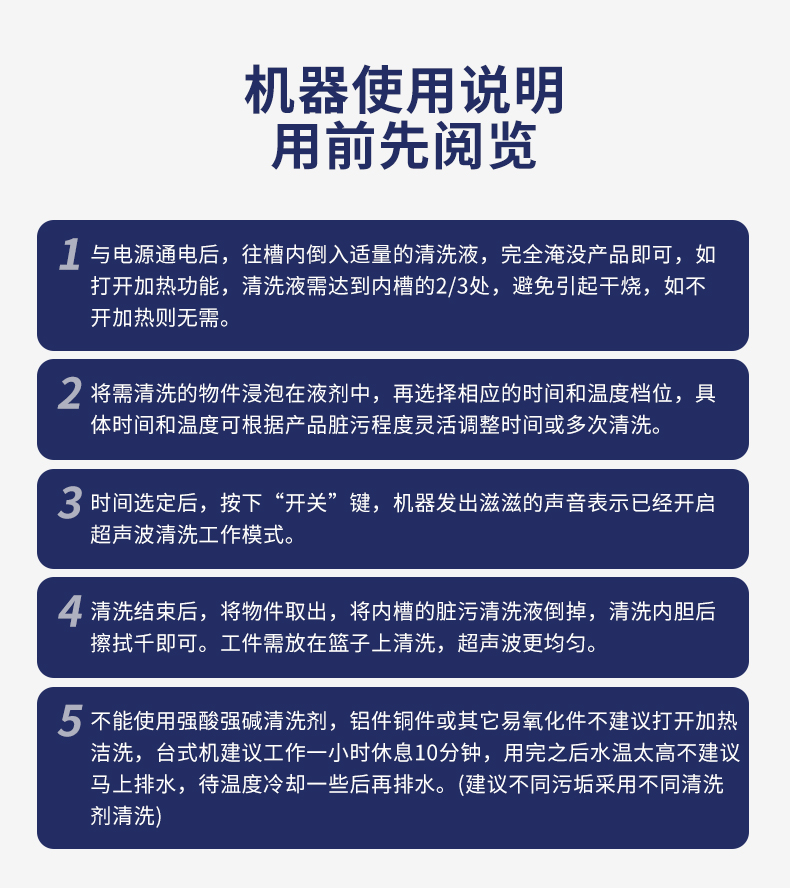 四位定時可調,時間控製精確到(dào)秒,1-99分鍾可調可根據清洗需求進行調節。純銅線機芯,高溫不燒機大功(gōng)率工業級震動(dòng)芯片,空化效應強度高打釘(dìng)+烤膠雙重固定/性能穩(wěn)定壽命長。SUS304不鏽鋼,一次性衝壓(yā)成(chéng)型。