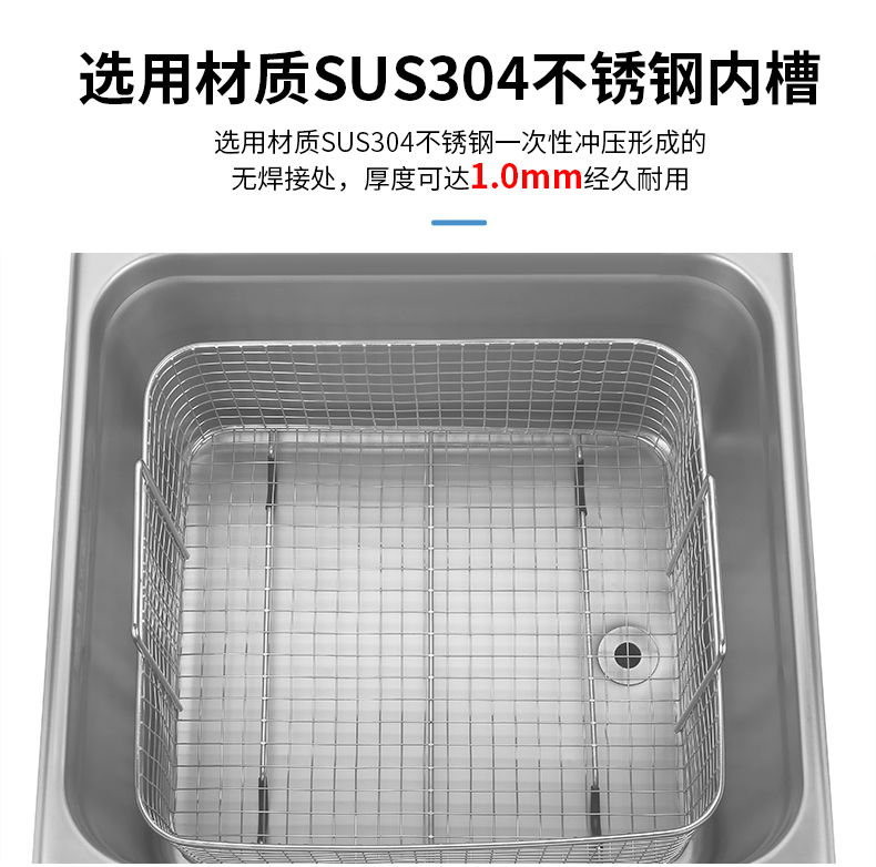 四位定時可調,時間控製精確到秒,1-99分鍾可調可根據清洗需求進行(háng)調節。純銅線機(jī)芯(xīn),高溫不燒機大功率工業級震動芯片,空化效應強度高打釘+烤膠雙重固定/性能穩定壽命(mìng)長。SUS304不鏽鋼,一次性(xìng)衝壓成(chéng)型。